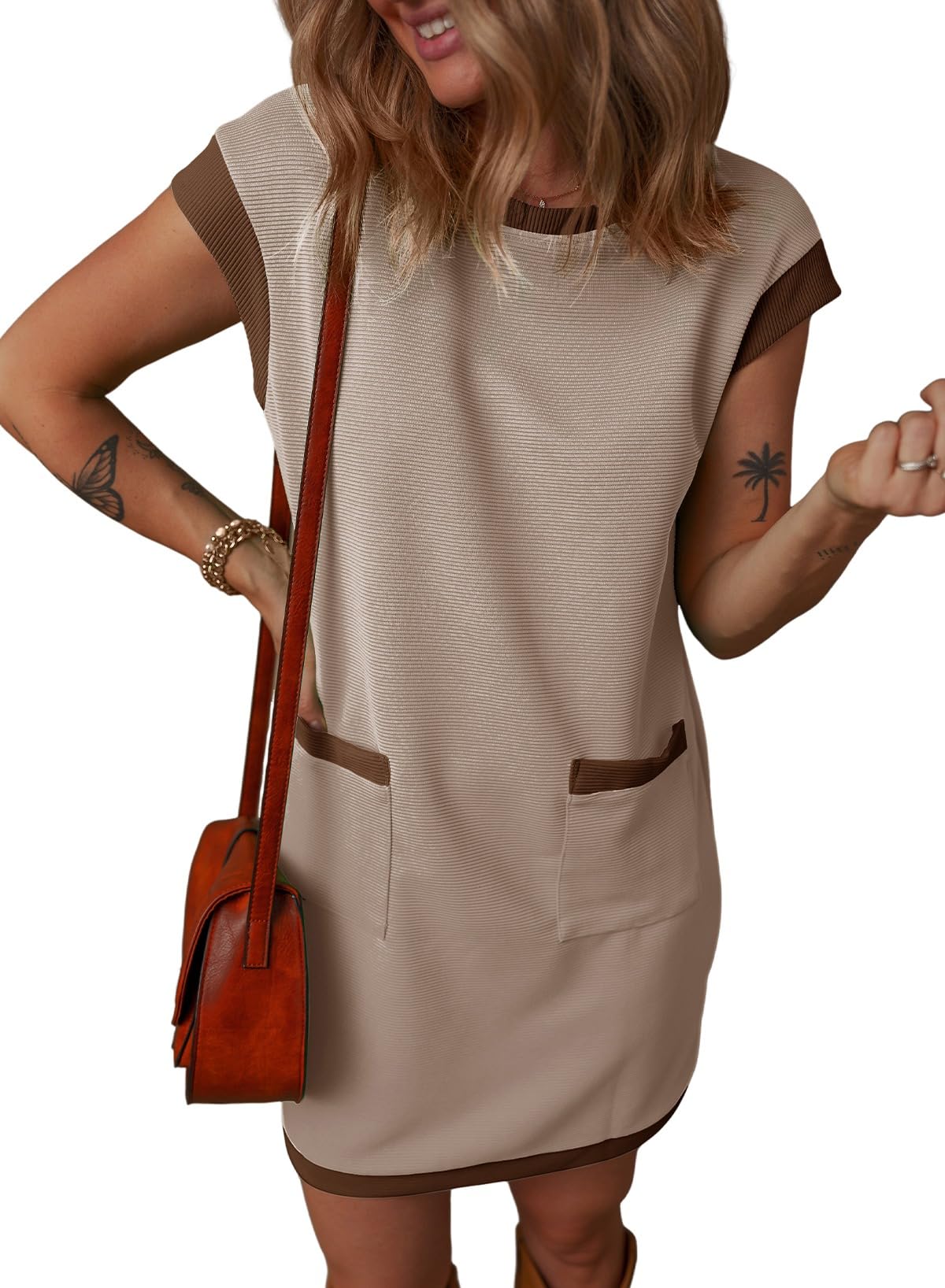 The casual summer dresses are featured with a chic color block pattern, which adds a modern twist to your wardrobe. The bold contrasts make it stand out among other casual dresses. Designed with practicality in mind, this dress includes two spacious pockets. These pockets add both functionality and a trendy look.