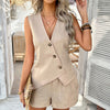 STYLISH AND COMFORTABLE: This two-piece set consists of a casual V-neck vest and matching shorts, combining style and ultimate comfort for everyday wear.