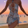 SEDUCTIVE STRUCTURED FLOW – Cleverly engineered ruching creates flattering dimension, while the bold cut-out at the chest adds modern allure. The straps offer versatile styling—wear them halter-neck or front-crisscross—for a look that's as dynamic as you are.