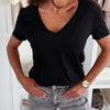 Women's Solid V-Neck Short Sleeve Tops