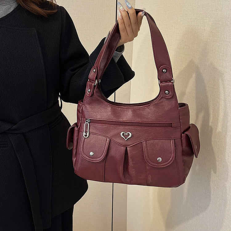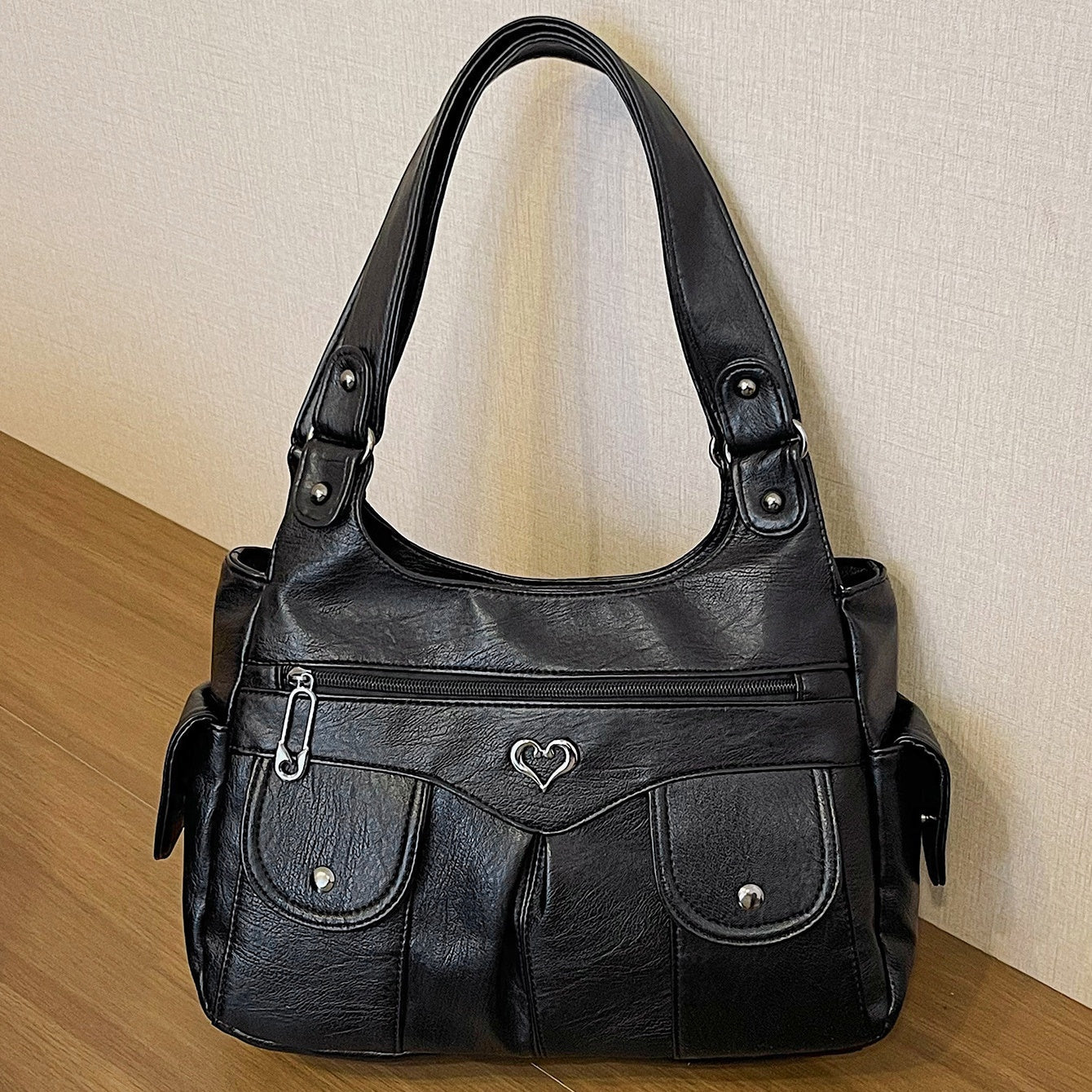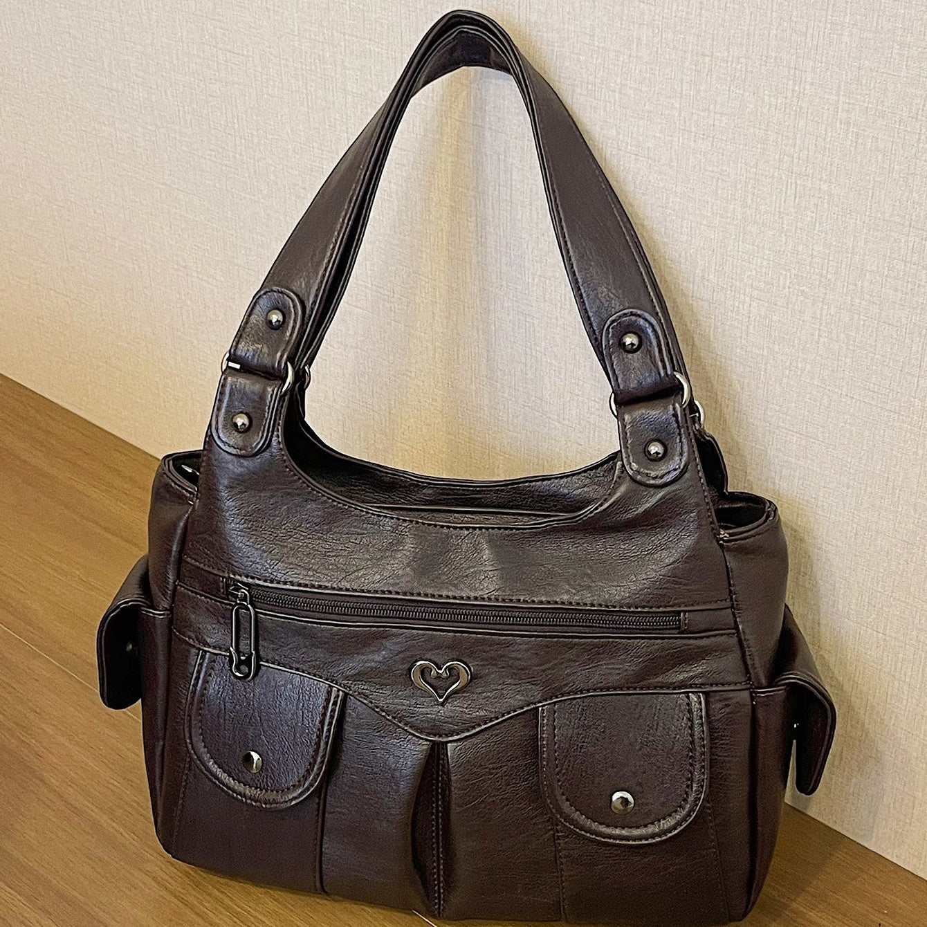 Women's Soft PU Leather Multi-Pocket Tote Bag