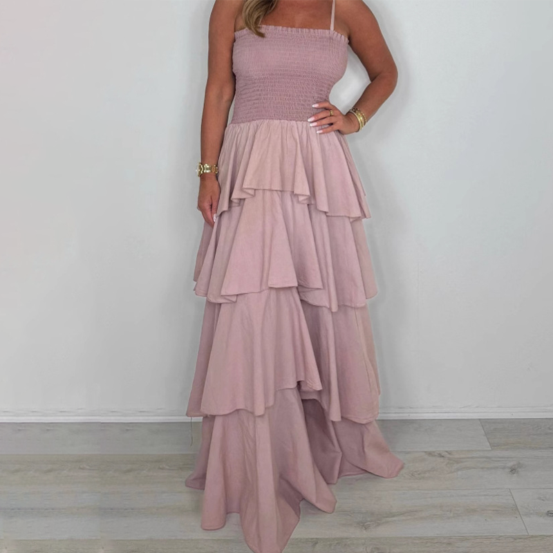 ROMANTIC TIERED SILHOUETTE - The four-tiered ruffle hem creates romantic movement, creating a dreamy "layered cake" effect that adds graceful movement with every step. The flattering A-line cut enhances your natural curves while maintaining comfort.