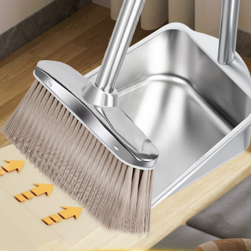 DURABLE STAINLESS STEEL CONSTRUCTION: Built with high-quality stainless steel, this broom and dustpan set ensures long-lasting performance. It’s resistant to rust and damage, providing dependable use for years.