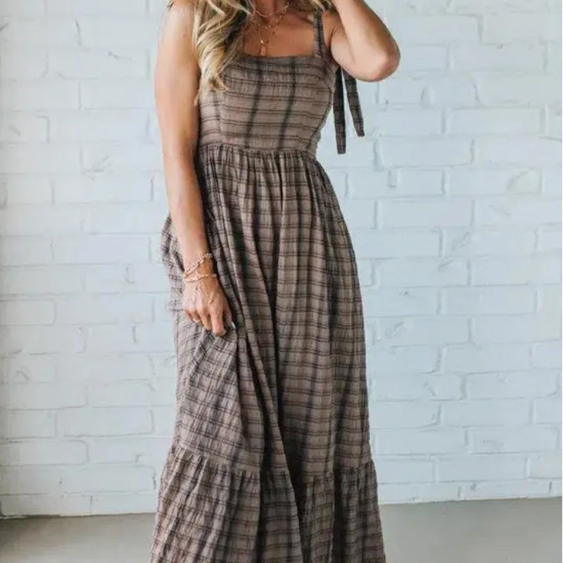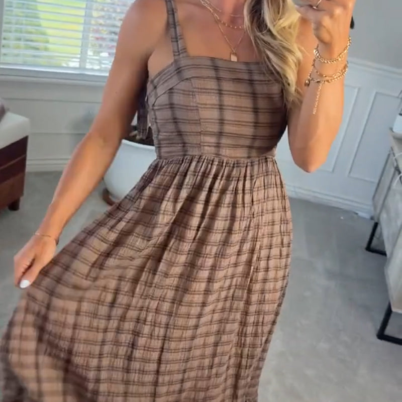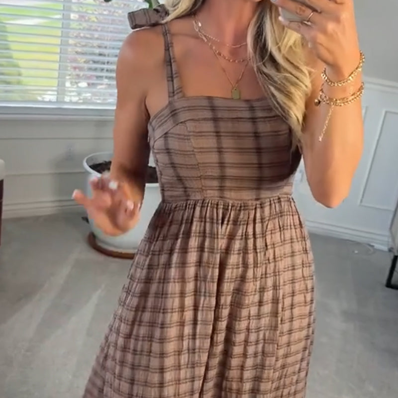 Stylish Plaid Spaghetti Strap Dress