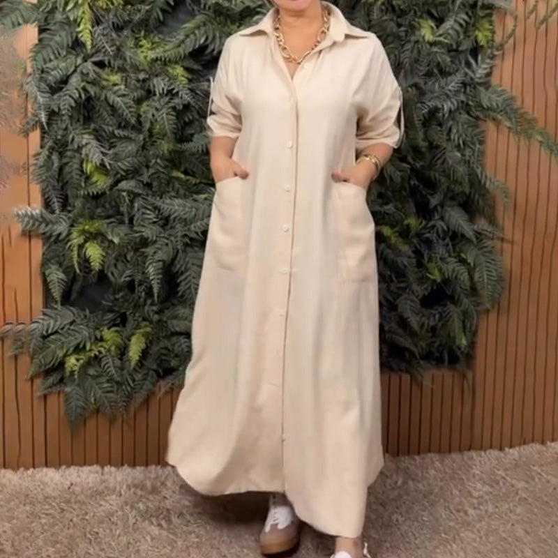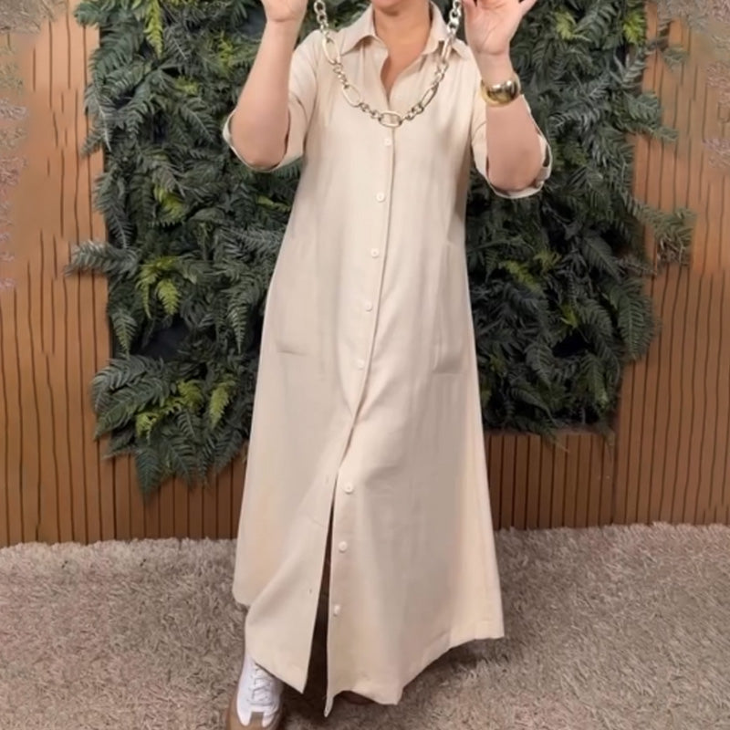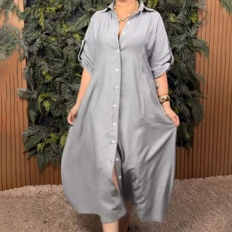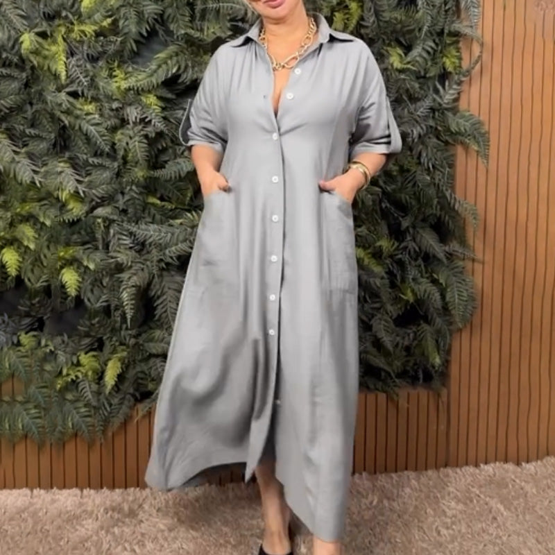 STYLISH SHIRT-STYLE MAXI DESIGN : This long women's dress blends the classic appeal of a shirt with the grace of a maxi silhouette. Featuring a collar, button front, and clean lines, it delivers a polished look that transitions easily from daytime errands to evening events without sacrificing comfort or style.