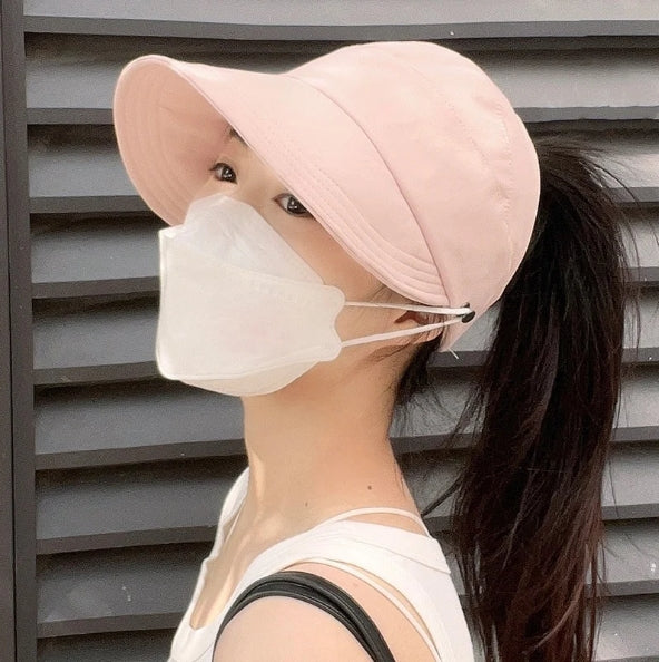【Humanized Design】: This sun hat is hollow-topped and easy to wear for ponytail hair. There is a metal hook on each end, you can hang your mask or sun shading face towel on it to avoid ear discomfort caused by wearing mask for a long time.