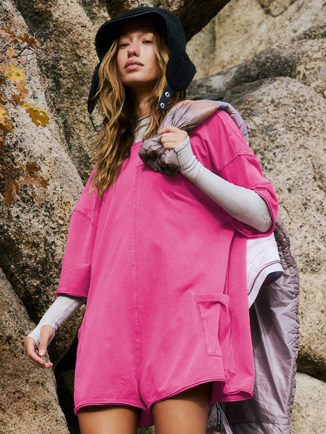 Beat the heat with our Oversized T-shirt romper. Stay fresh and comfortable all summer long
