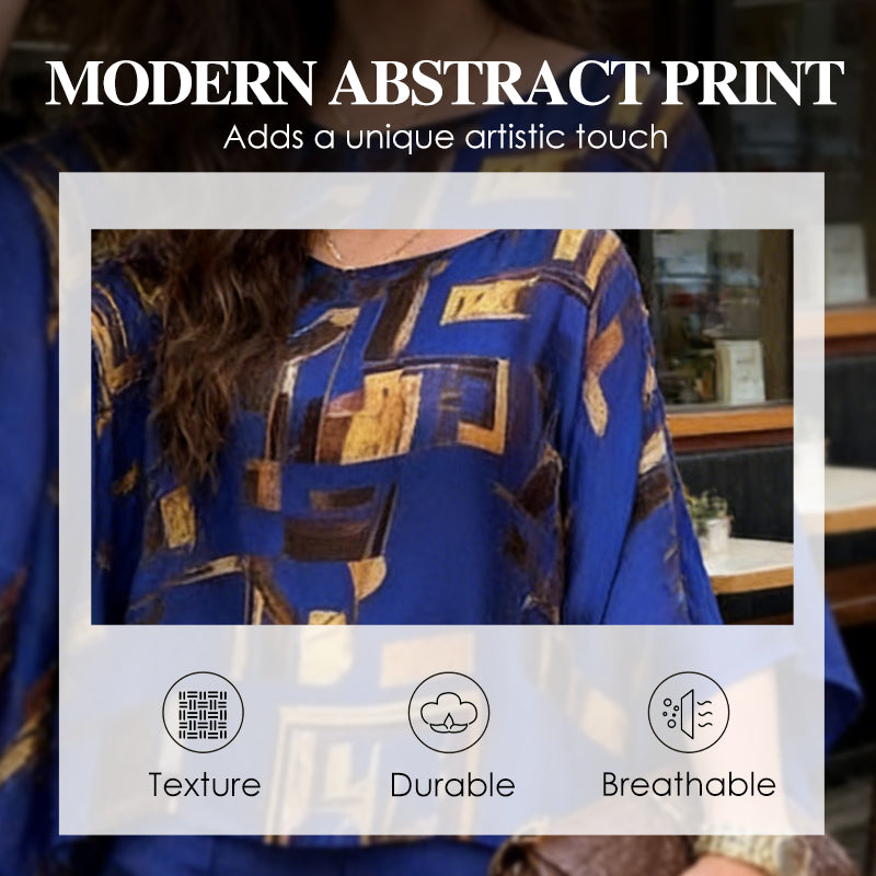 ARTISTIC ABSTRACT PRINT - The unique and modern pattern on the top adds a touch of artistic flair to your ensemble. It serves as a sophisticated statement piece, elevating the overall outfit effortlessly.