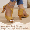 Women's Back Zipper Peep-Toe High Heel Sandals