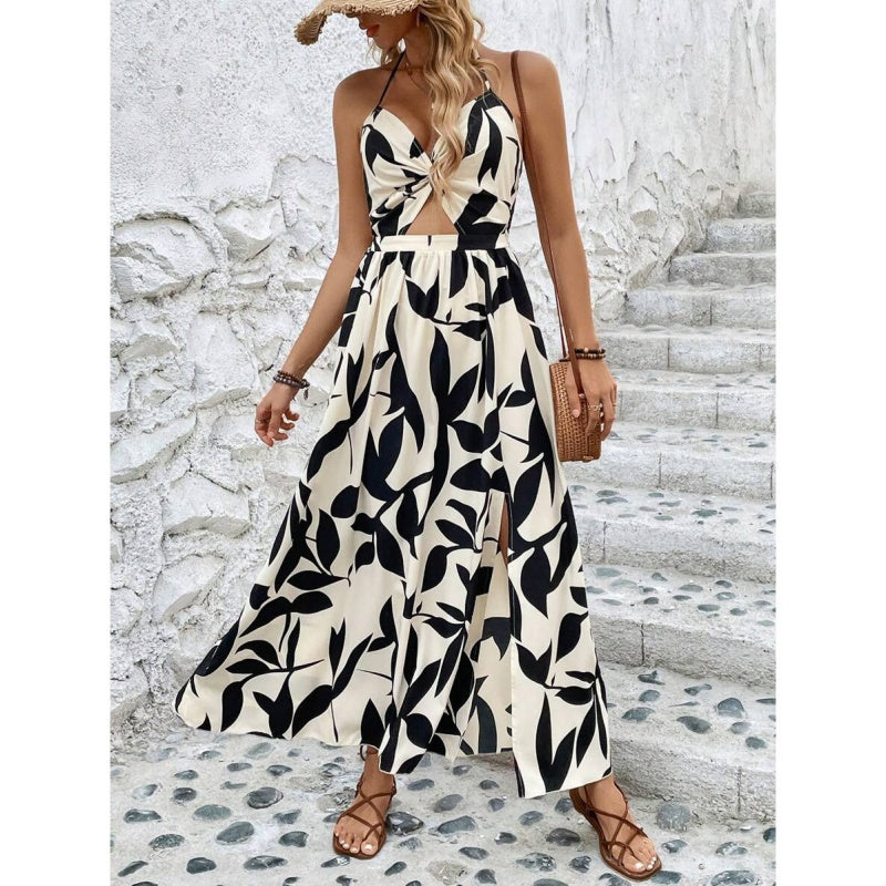 STRIKING FLORAL PRINT WITH UNIQUE CUTS – Showcases a bold floral pattern with large leaves or abstract motifs, paired with strategic cut-outs at the waist or mid-section to add a daring, modern touch.