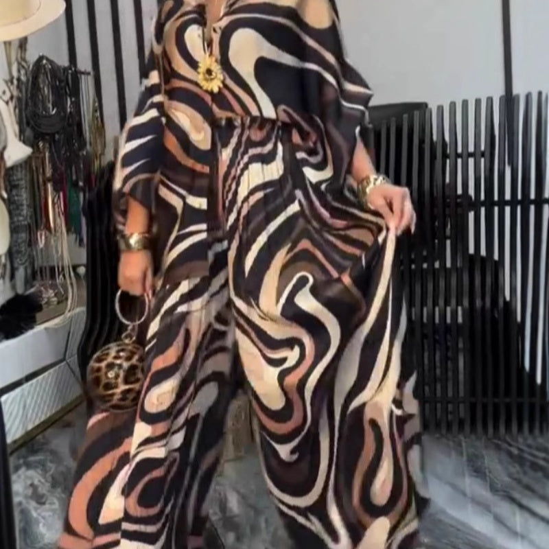 Package Includes: 1 * Women's Fashion Loose Printed Shirt & Wide Leg Pants 2-Piece Set