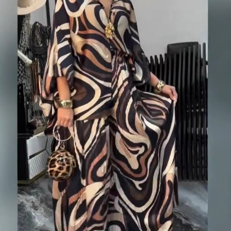 Women's Fashion Loose Printed Shirt & Wide Leg Pants 2-Piece Set