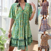🔥BUY 2 GET 10% OFF👗Women’s Flower Print V Neck Short Sleeve Mini Dress