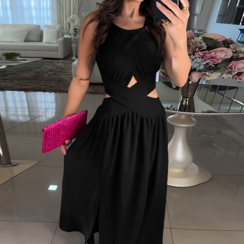 Package Includes: 1 * Women's Sexy Waisted Cross Strap Backless Halter Long Dresses