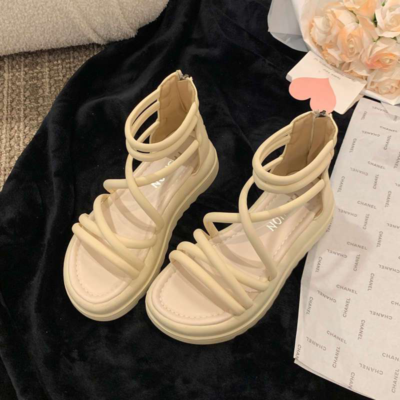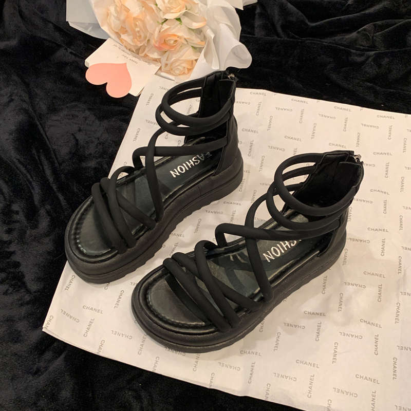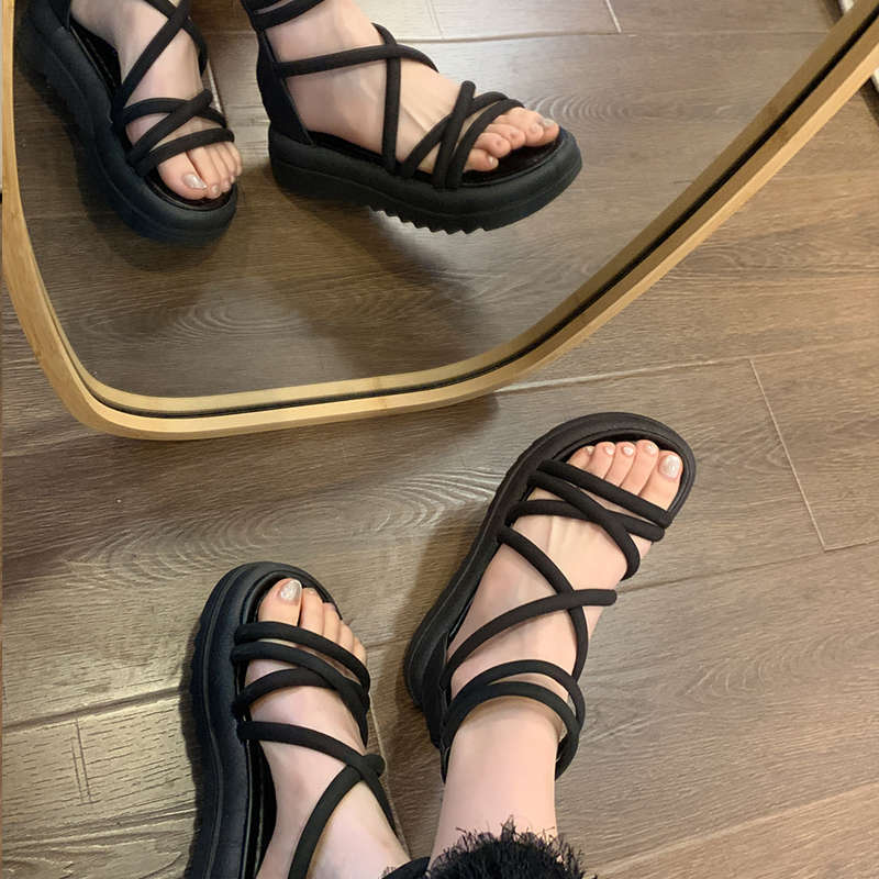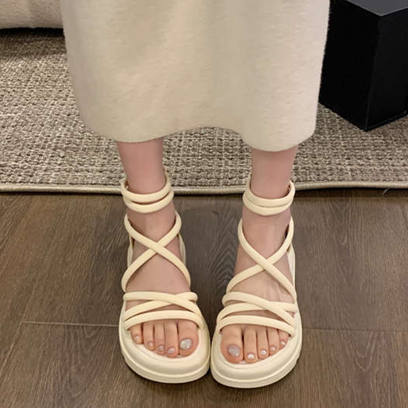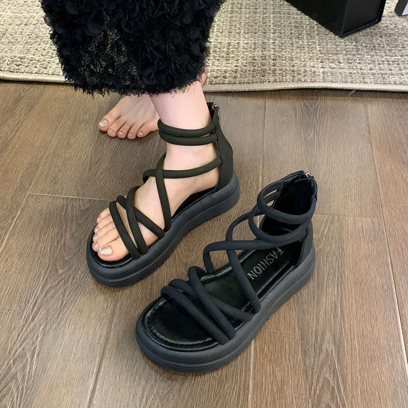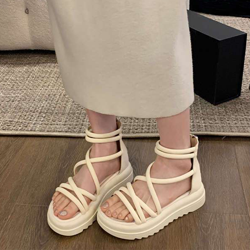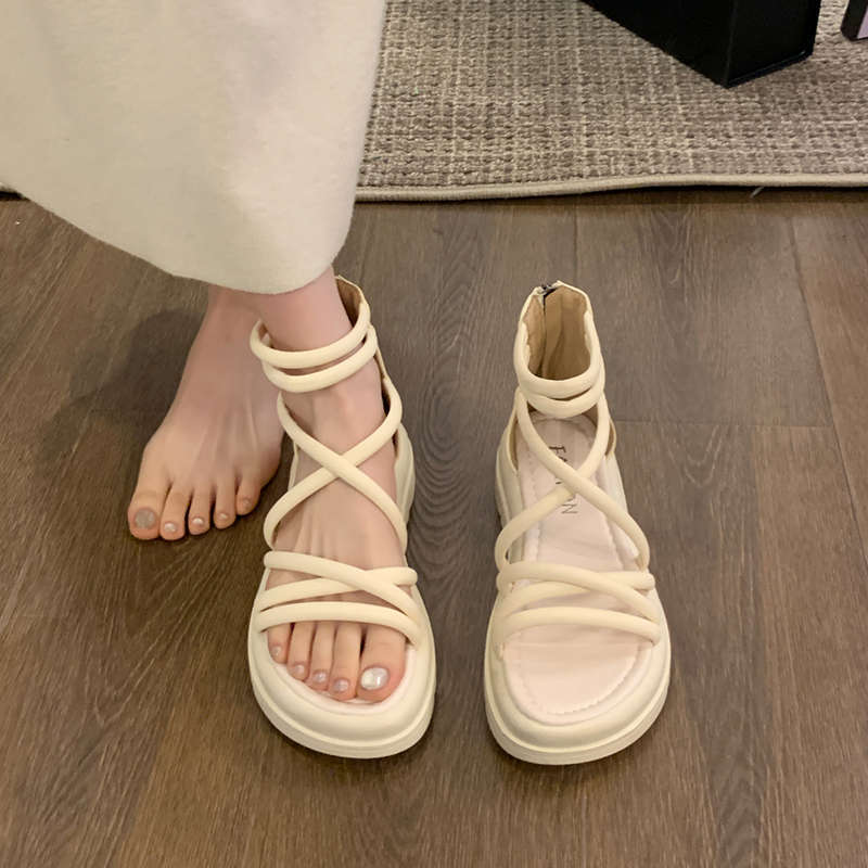 Women's Thick Sole Slip-Resistant Sandals with Crisscross Straps and Back Zipper