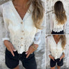 Women's V-Neck Lace Embroidery Long Sleeve Blouse