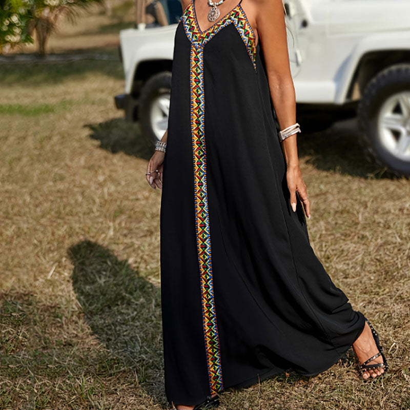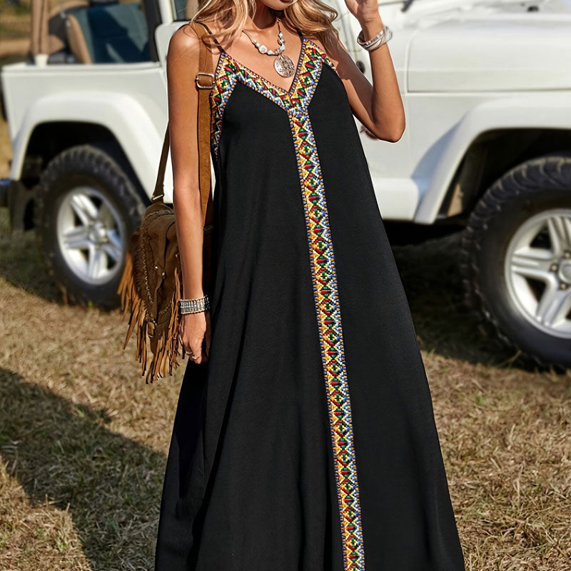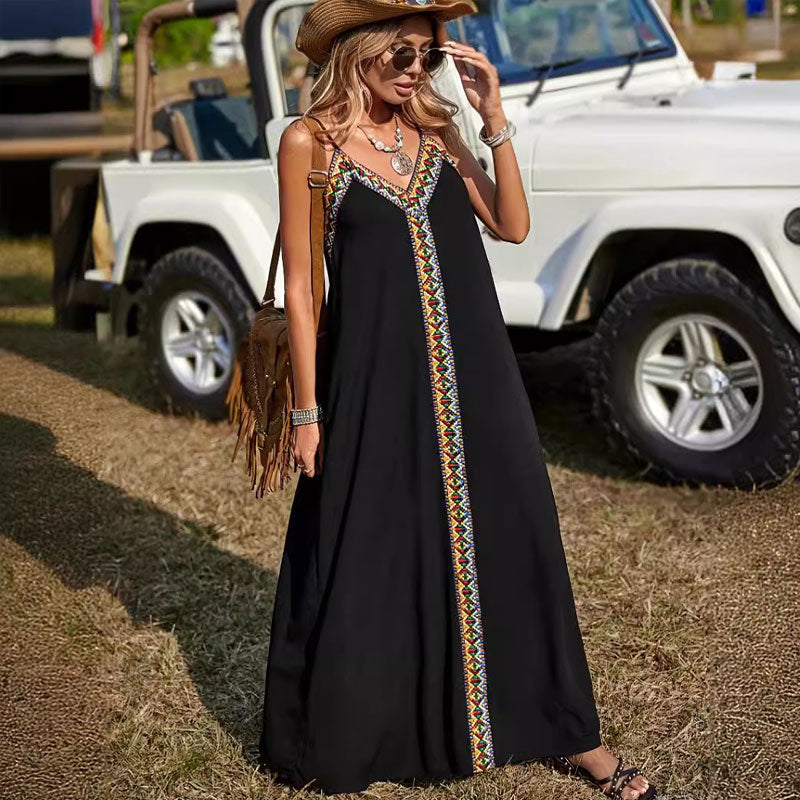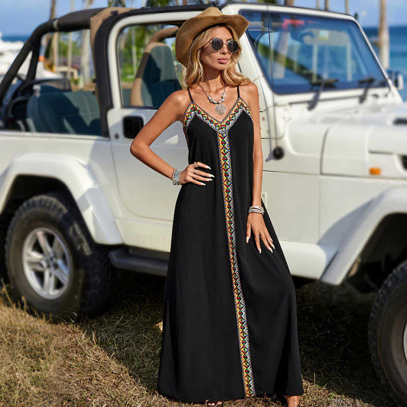 Women's Bohemian V-Neck Casual Spaghetti Straps Dress