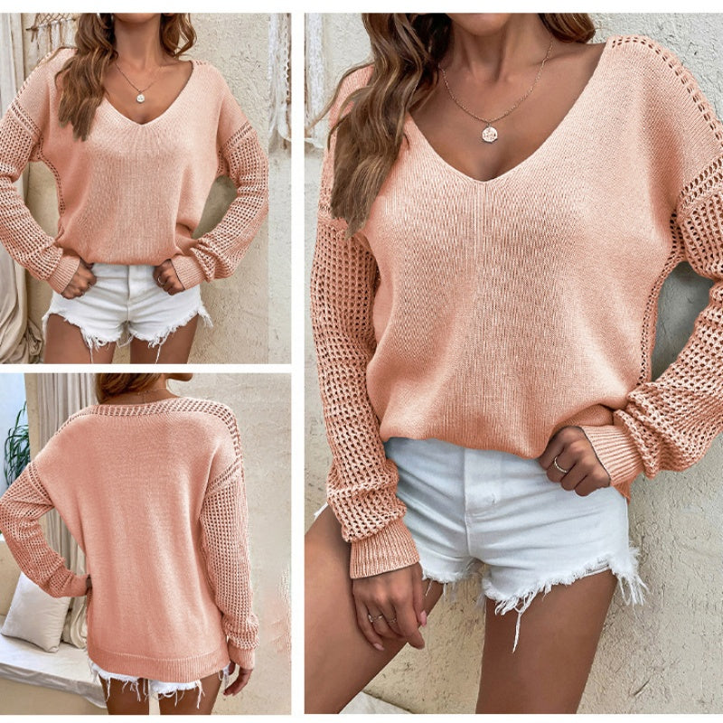 Women's Casual Loose Fit V-Neck Knit Sweater