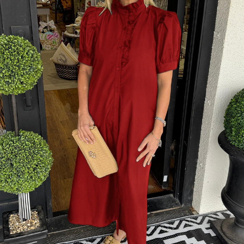Women's Casual Solid Color Standing Collar Button Down Dress
