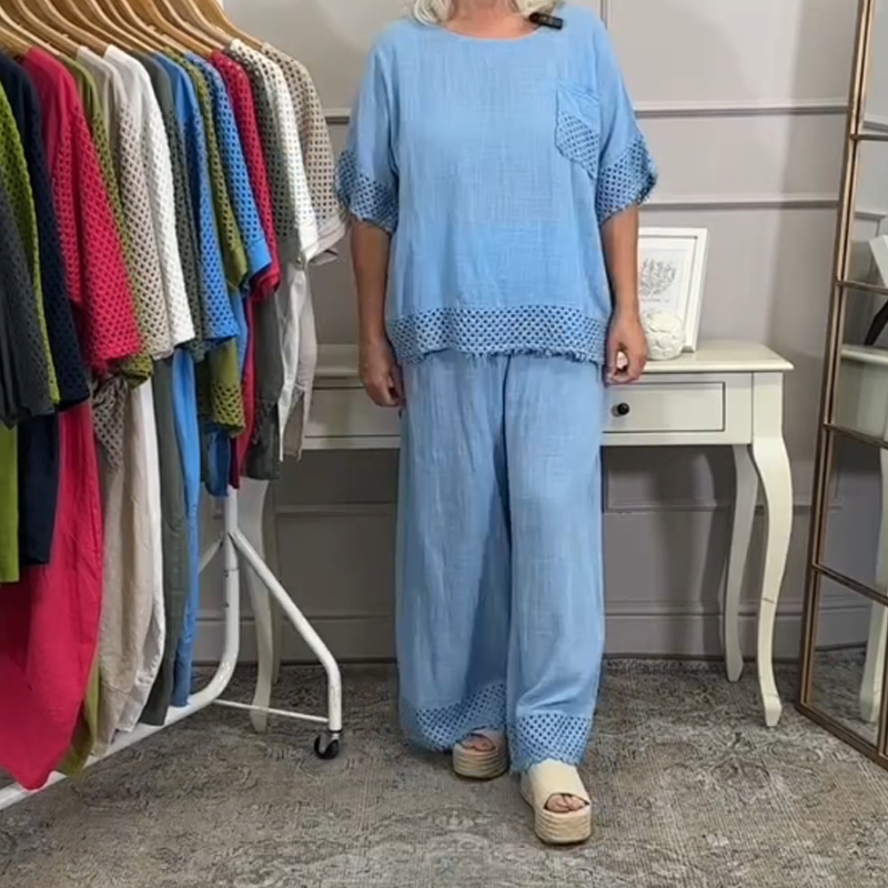 Package Includes: 1* Women's Casual Top & Wide-Leg Pants Set