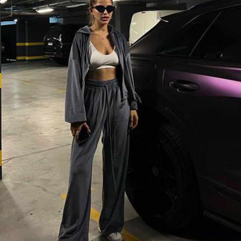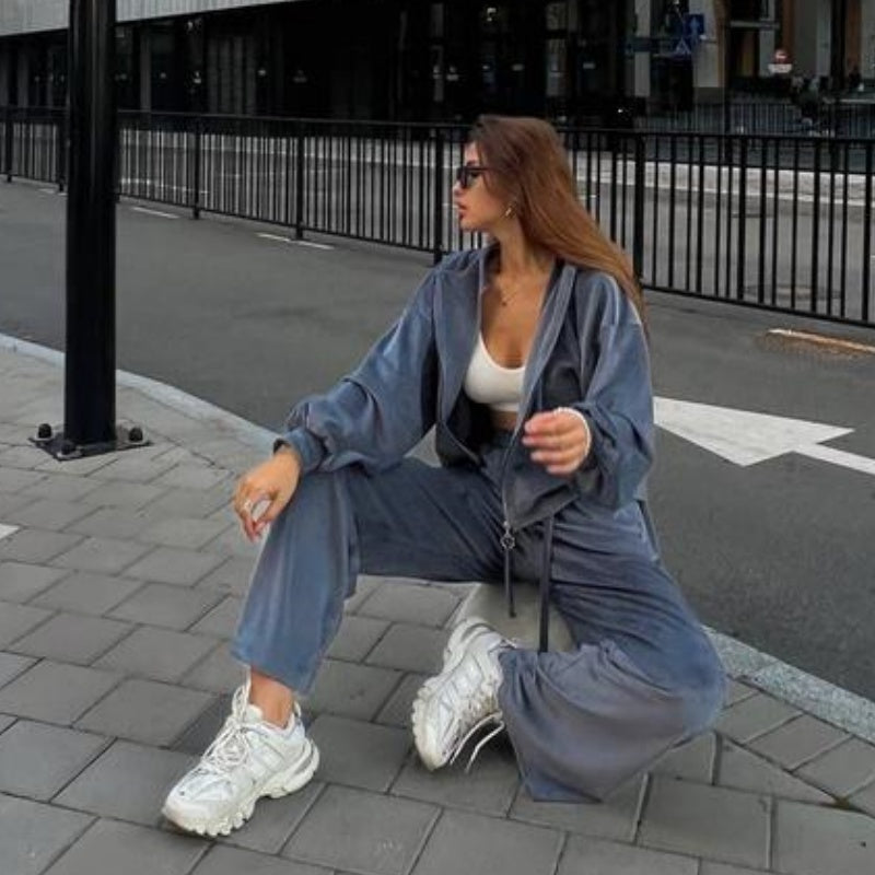 Package Includes:1*Women's Corduroy Zippered 2-Piece Sports Set