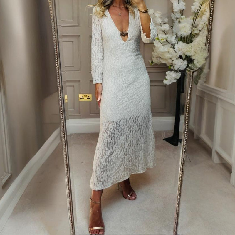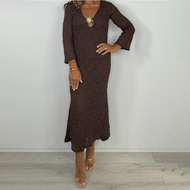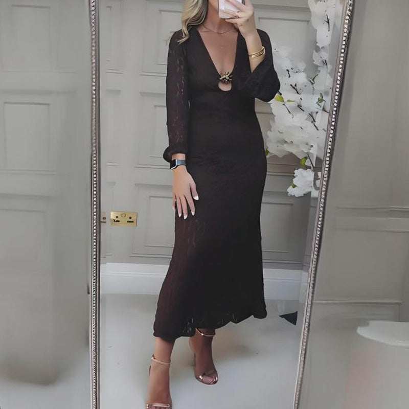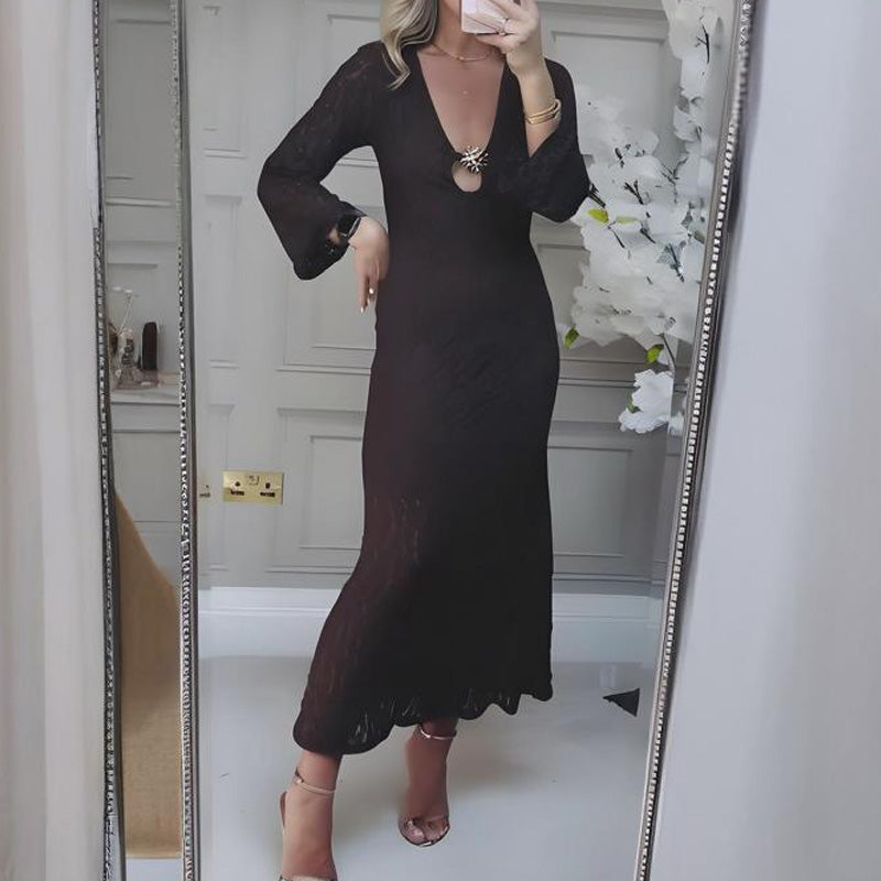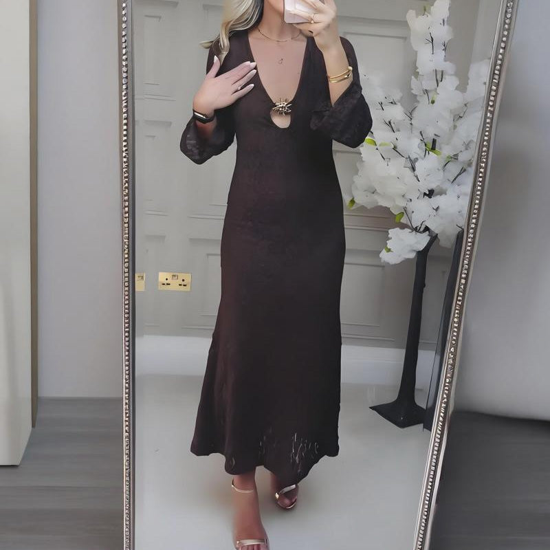 FLATTERING NECKLINE DESIGN: The tasteful V-neck cut with a subtle keyhole detail at the bust creates an elegant yet alluring silhouette. This carefully balanced design offers just the right amount of sophistication and femininity for date nights or special occasions while maintaining appropriate coverage.