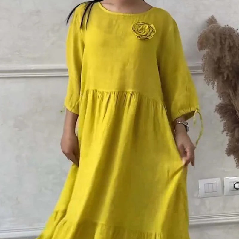 Women’s Elegant Round Neck Pleated Long Dress