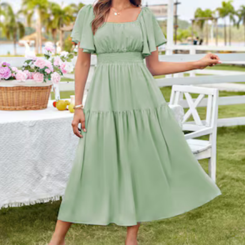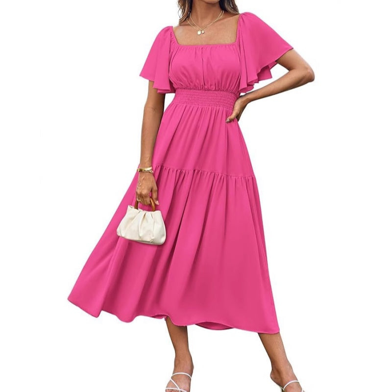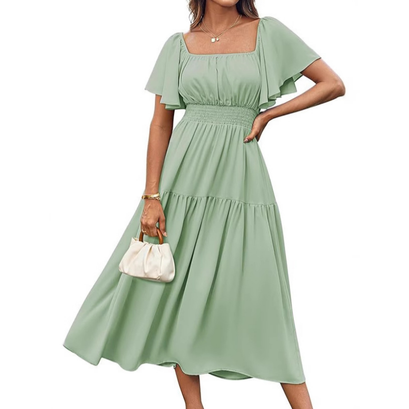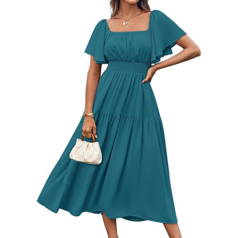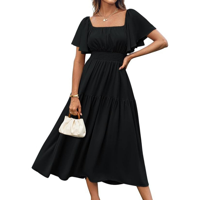 Package Includes: 1 * Women's Elegant Solid Square Neck Flowy Dress