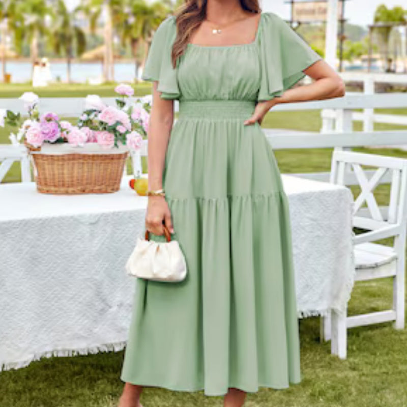 Women's Elegant Solid Square Neck Flowy Dress