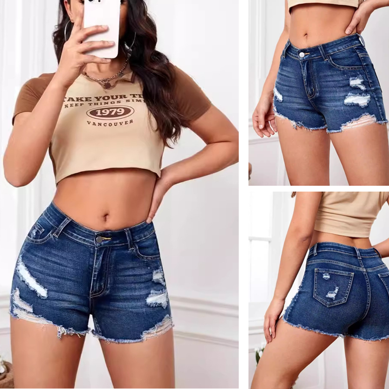 Women's Fashion High Waist Stretch Denim Shorts