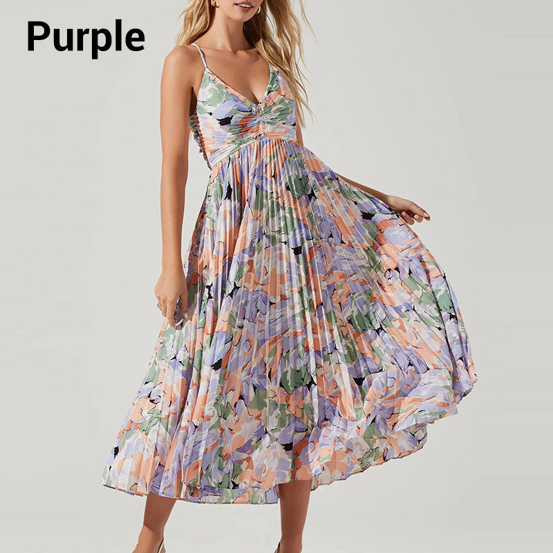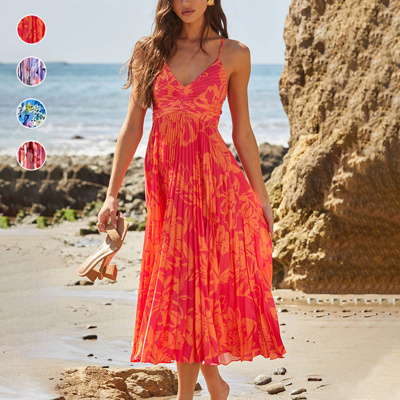 Package Included: 1*Women's Fashion V-Neck Sleeveless Printed Dresses