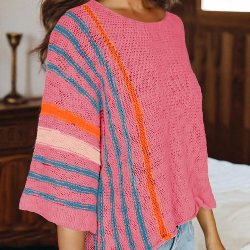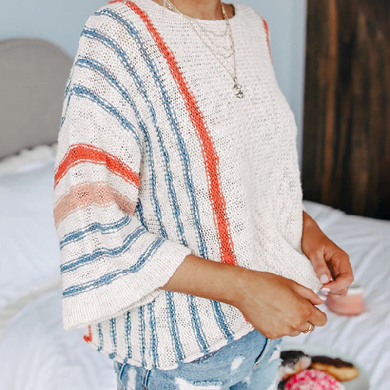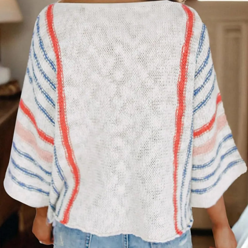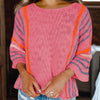 Women's Fashion Vertical Stripe Color Blocking Flared Sleeve Pullover Knit Sweater