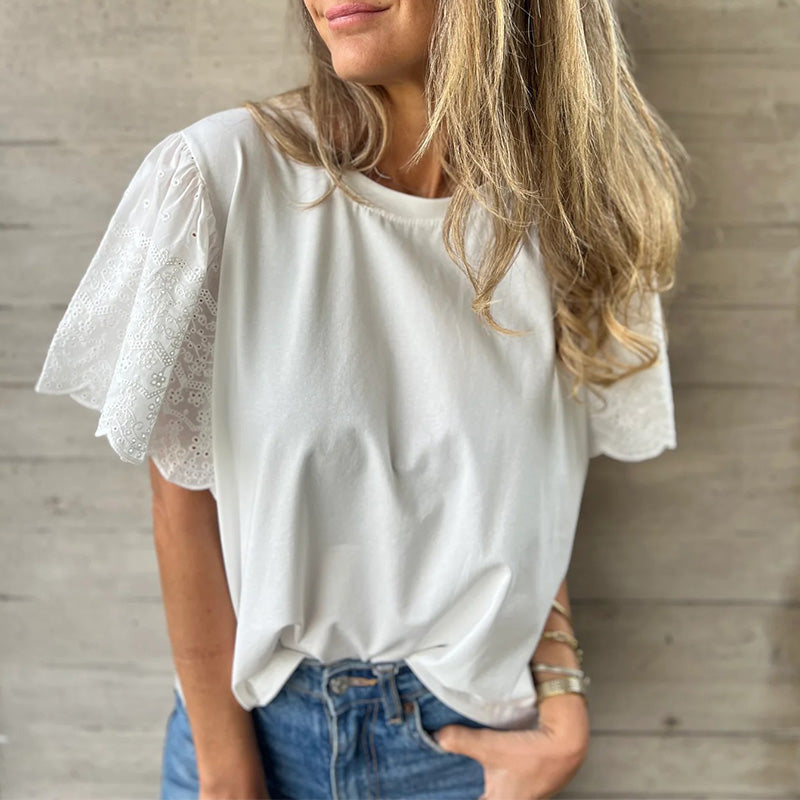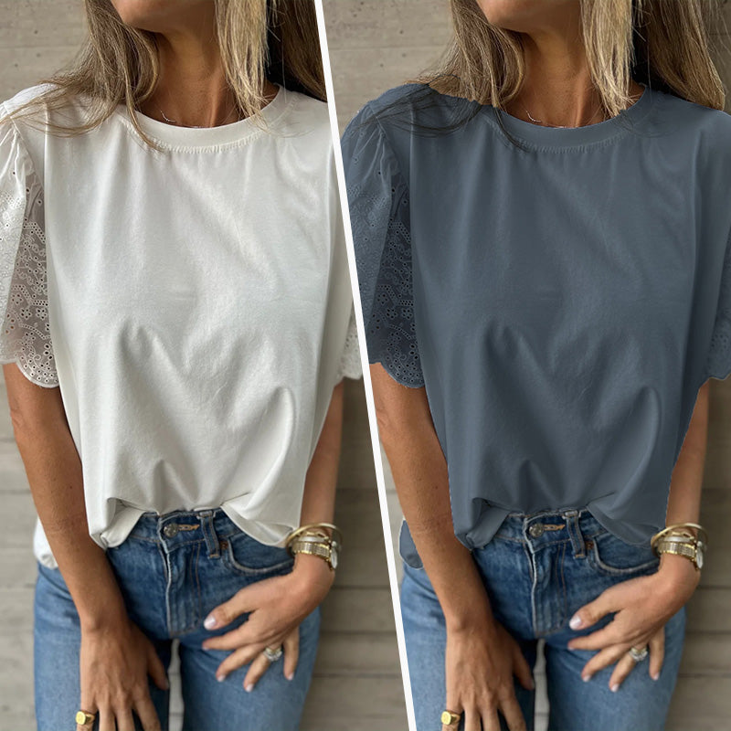 Package Includes: 1×Women's Lace Detail Short Sleeve Top
