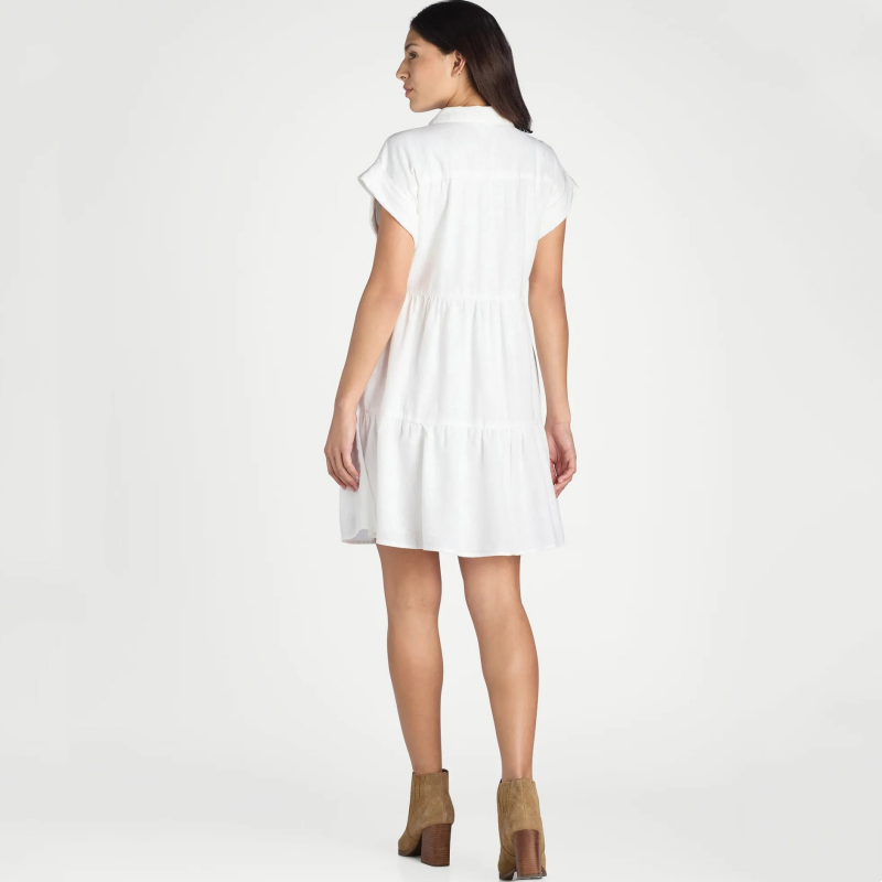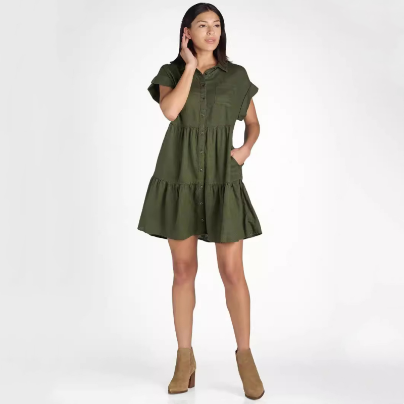 Women’s Lapel Short Sleeve Pleated Button-Down Dress
