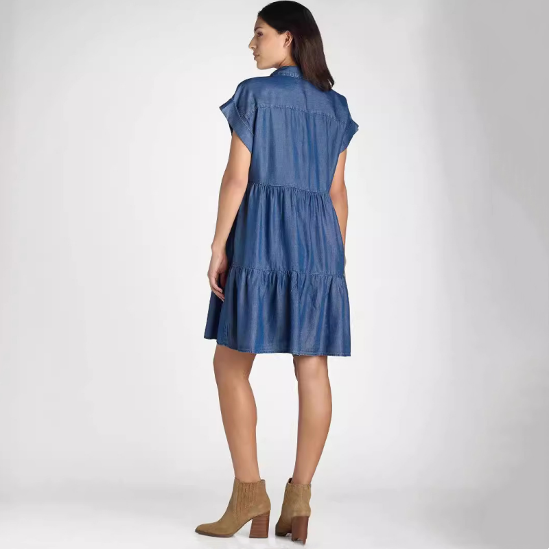 Package Includes: 1 * Women’s Lapel Short Sleeve Pleated Button-Down Dress