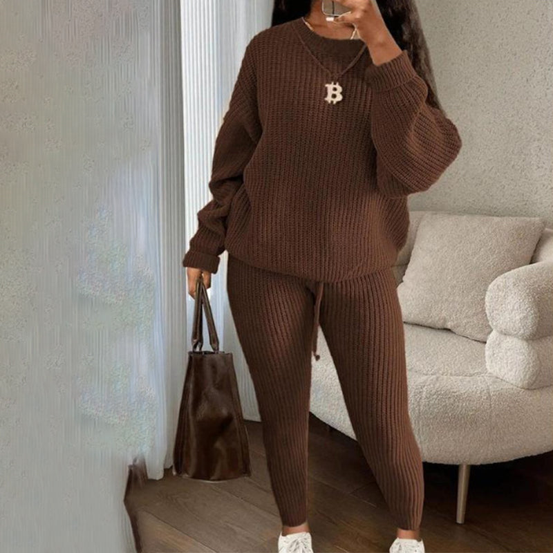 ELEGANT DESIGN: This 2-piece set features a solid-color knit with vertical jacquard texture, combining a long-sleeve top and compatible pants for a polished, cohesive look. The subtle texture adds sophistication, while the solid color ensures effortless styling.