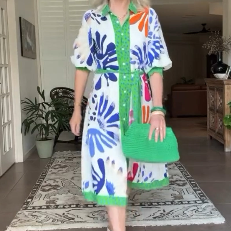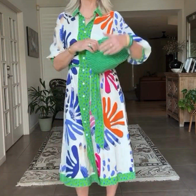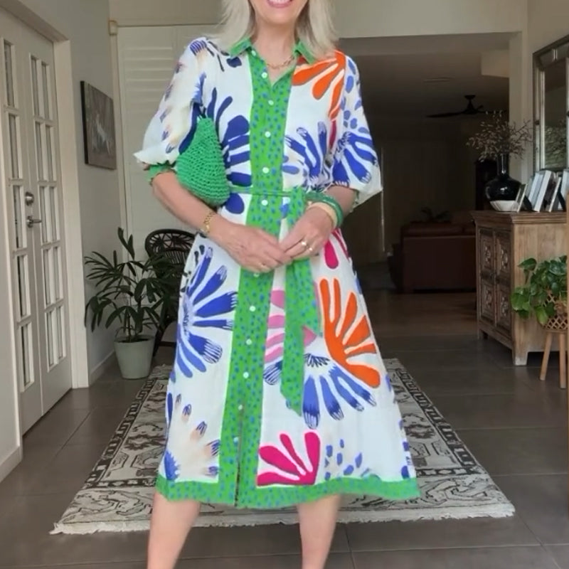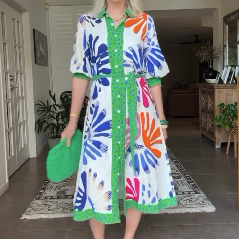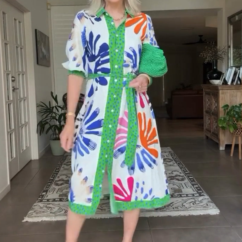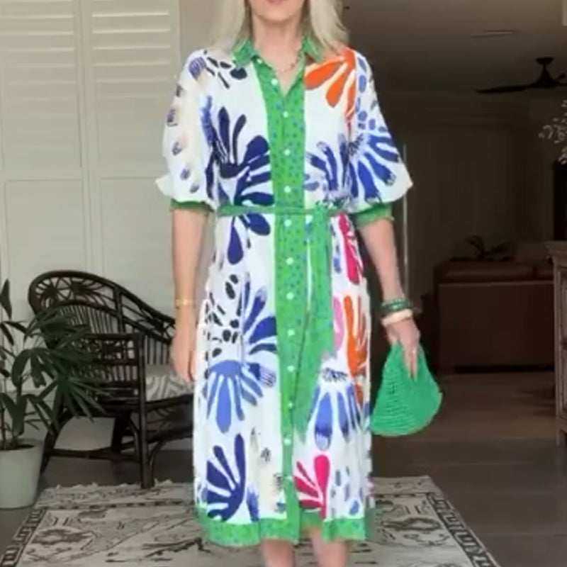 ELEGANT FLORAL PRINT:Features a sophisticated floral pattern in refreshing green tones that creates a feminine, nature-inspired aesthetic. The artistic design transitions beautifully from daytime garden parties to evening events with simple accessory changes.