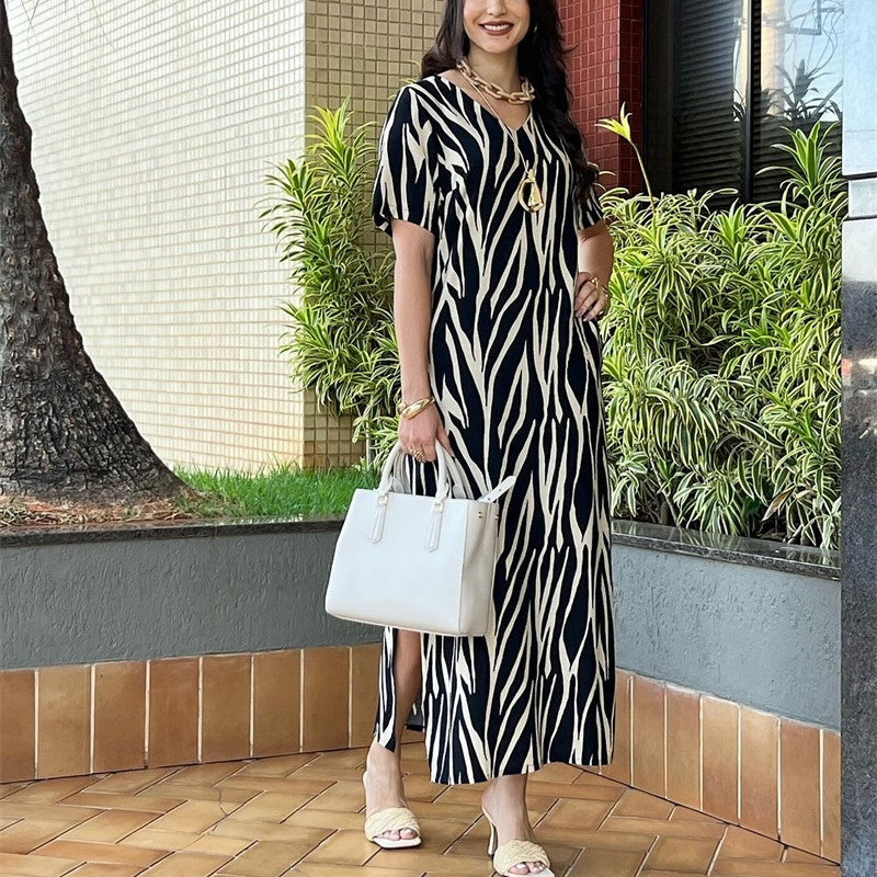 Package Include: 1* Women's Printed V-Neck Dress with Side Slit