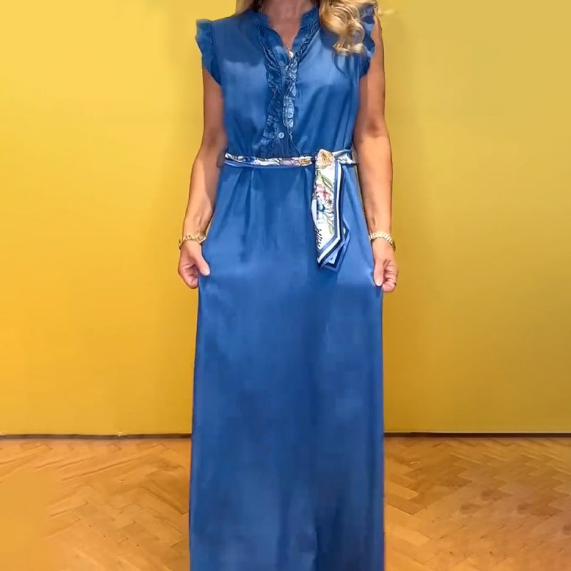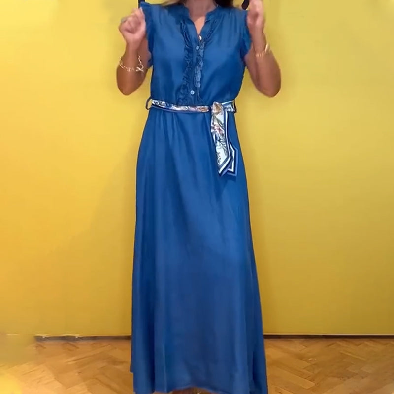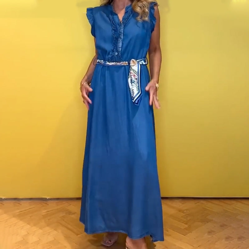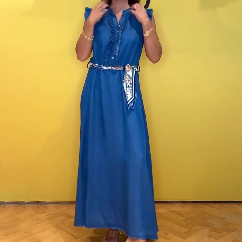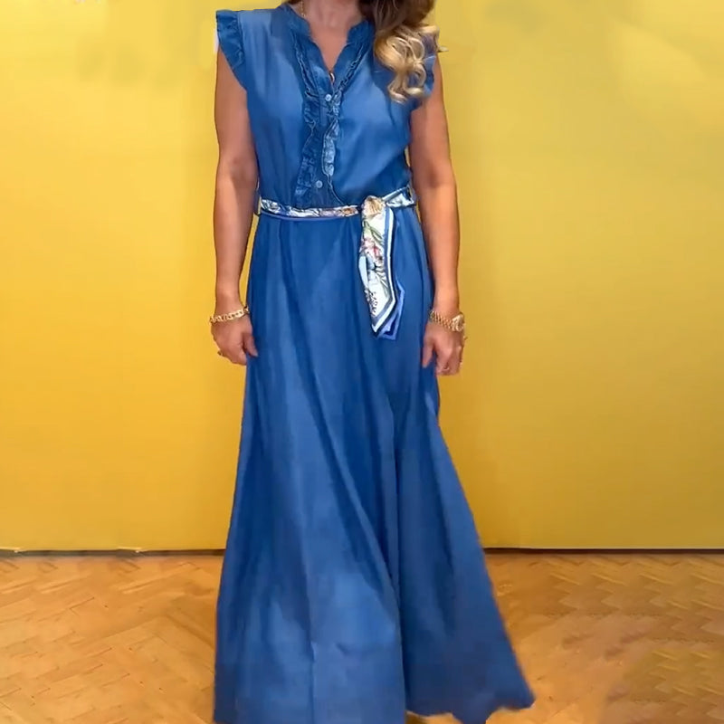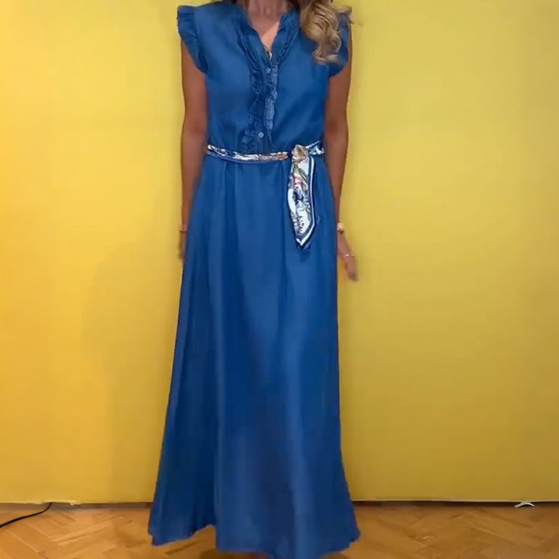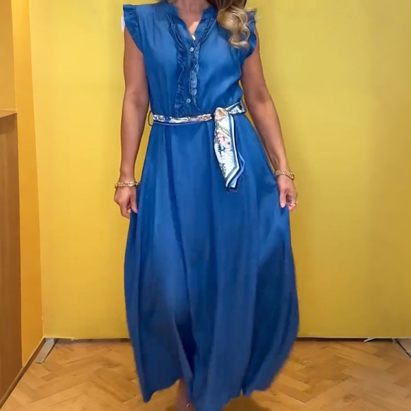 Women's Ruffled V-Neck Sleeveless Dress