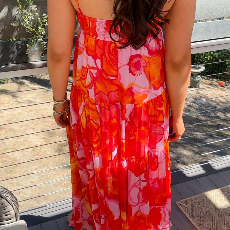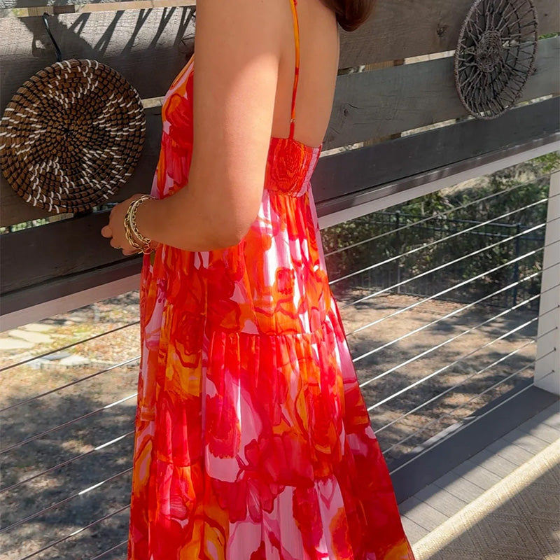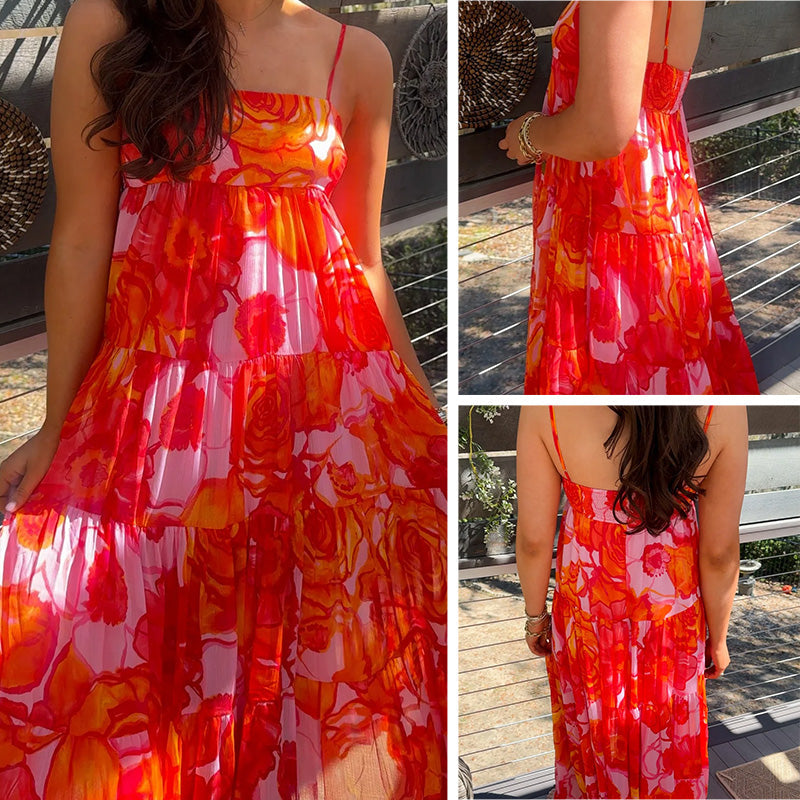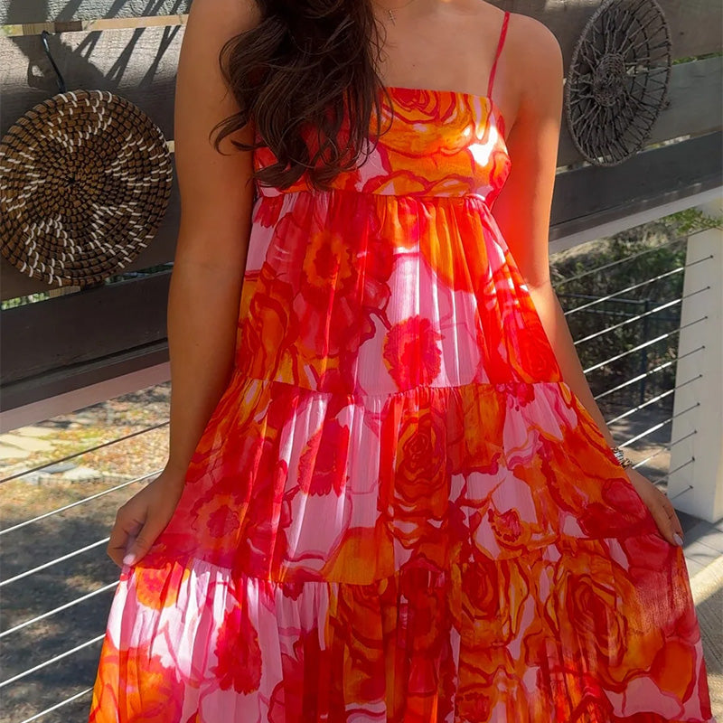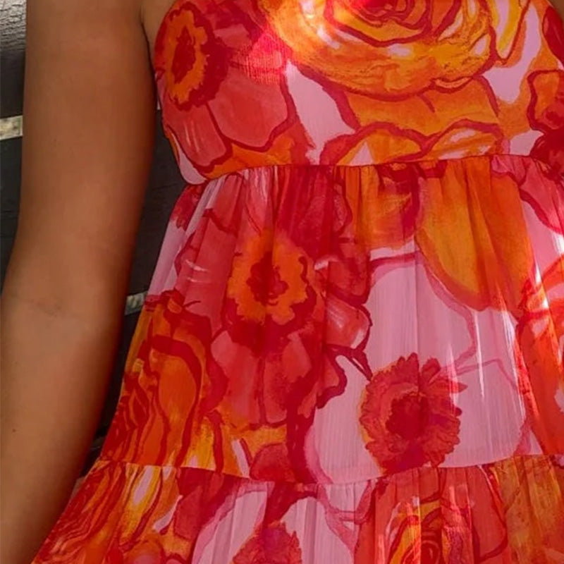 Women's Sexy Fashion Printed Halter Pressure Pleated Dresses