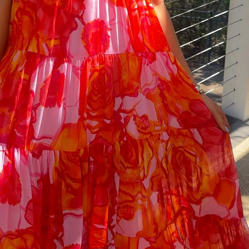 BOLD PRINTED DESIGN: Showcases a fashionable all-over print in vibrant red that makes a confident style statement. The striking pattern transitions effortlessly from daytime chic to evening glamour with simple accessory changes.