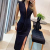 Women's Sleeveless Wrap V Neck Ruched Slit Long Dress