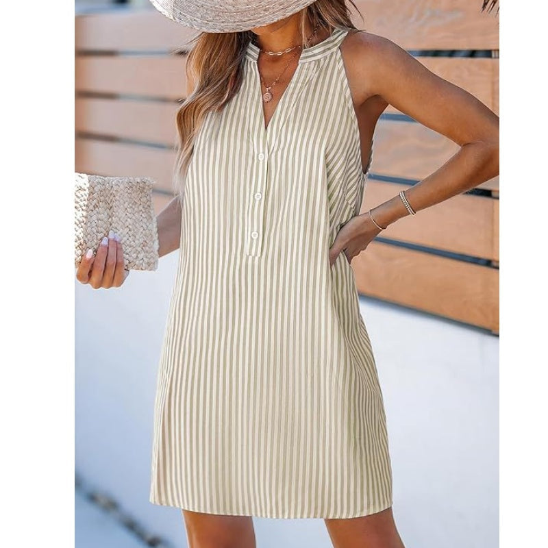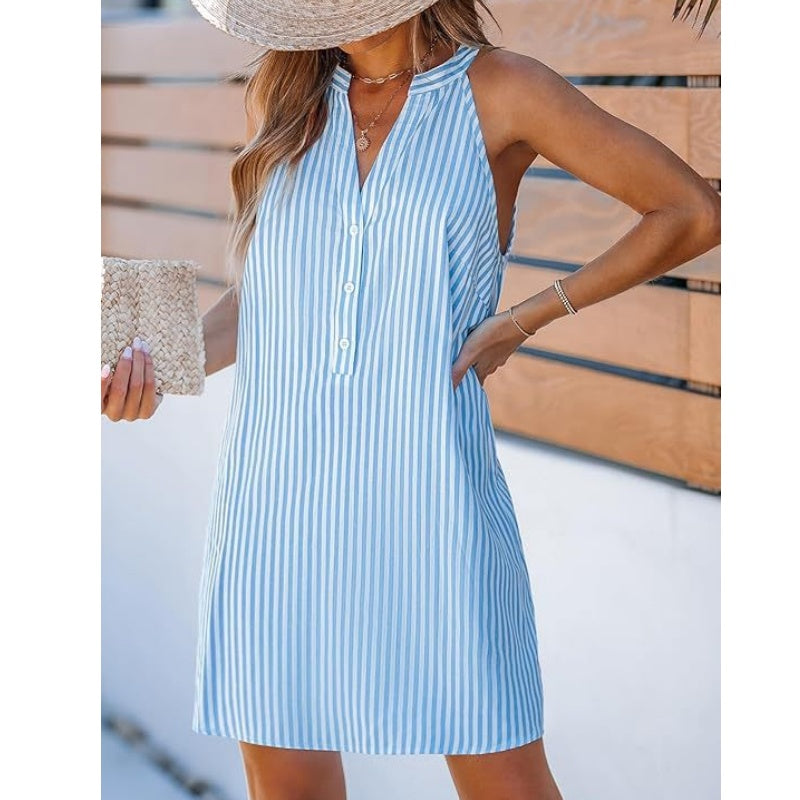 Package Includes: 1 * Women’s Striped V-Neck Sleeveless Short Dress