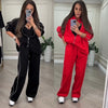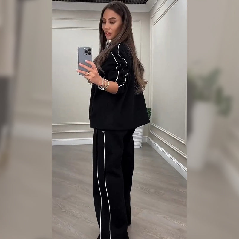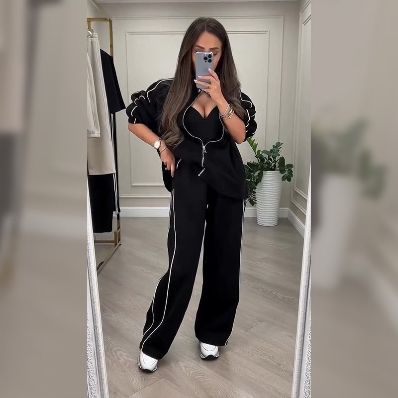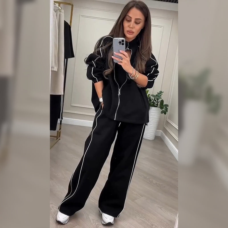 Package Includes: 1 * Women’s Striped Zipper Coat & Pants (2-Piece Set)