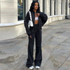 COMFORTABLE FIT: The set includes a zip-up jacket and wide-leg pants. The jacket features a full zipper for easy wearing and removal, while the wide-leg pants provide a relaxed fit, offering both style and comfort.