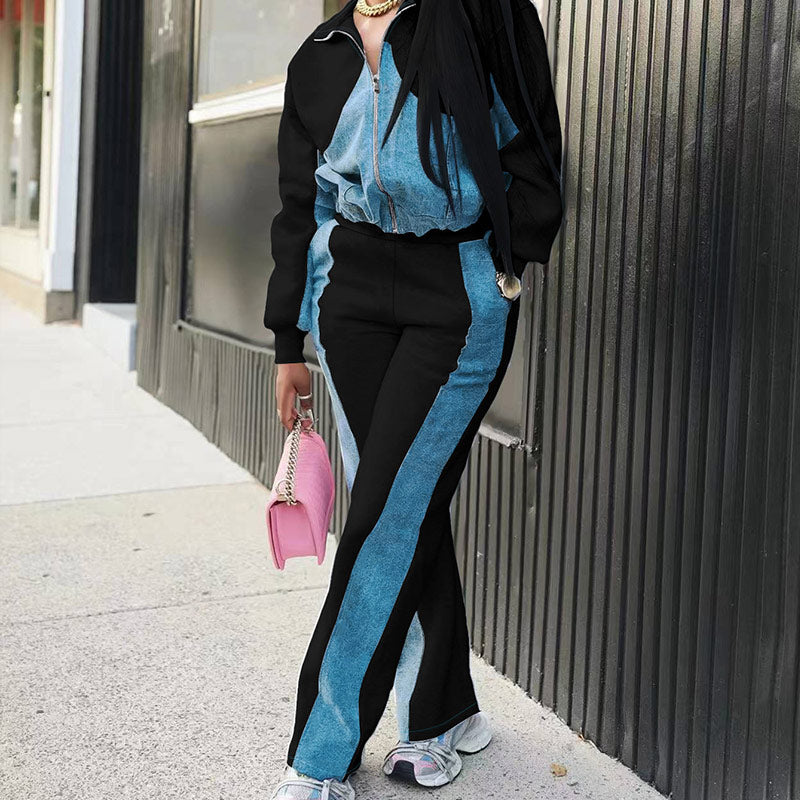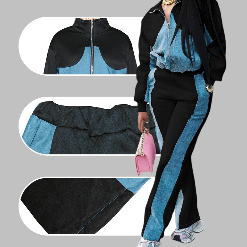Package Included: 1 * Women’s Trendy Color Block Jacket & Pants 2-Piece Set