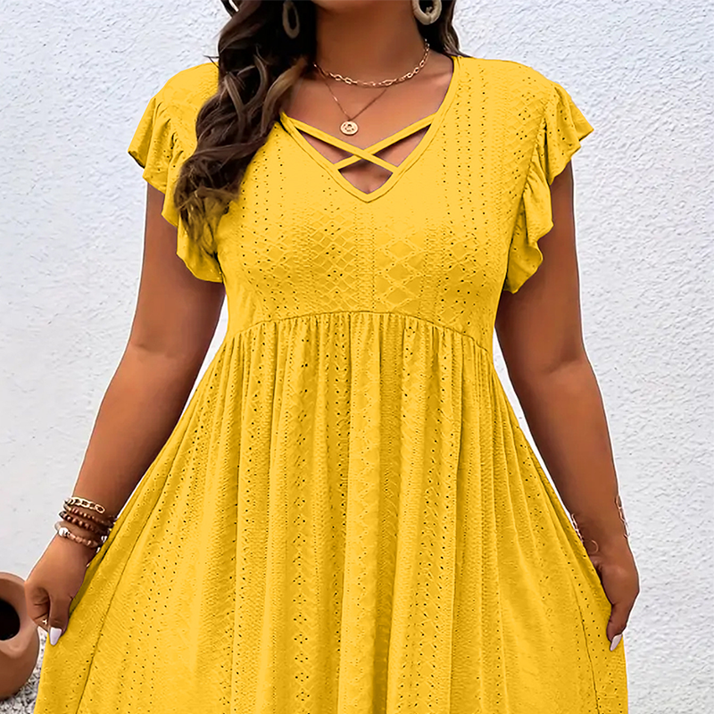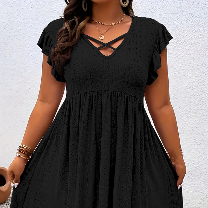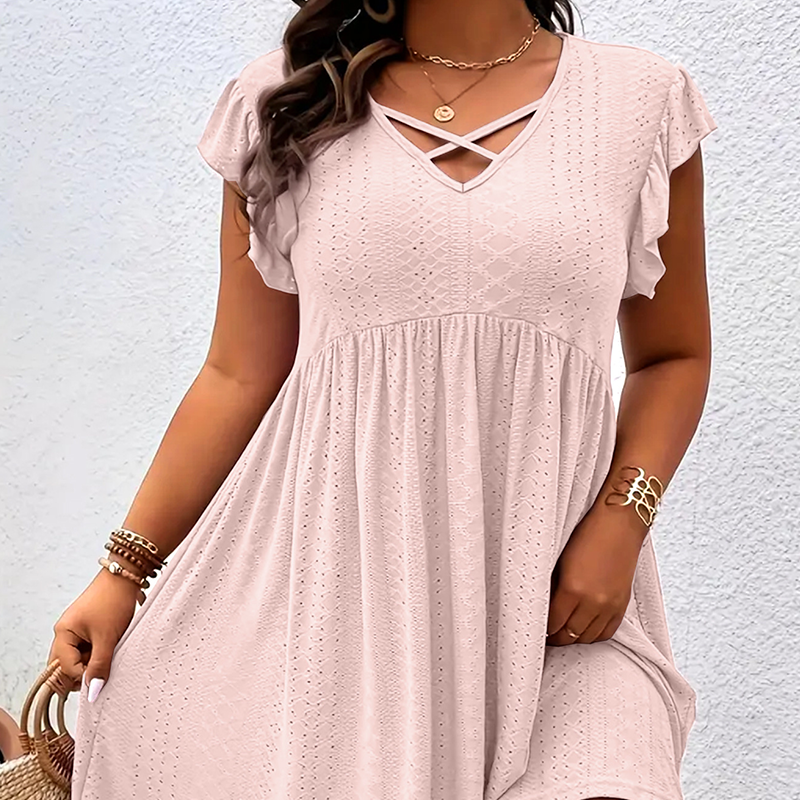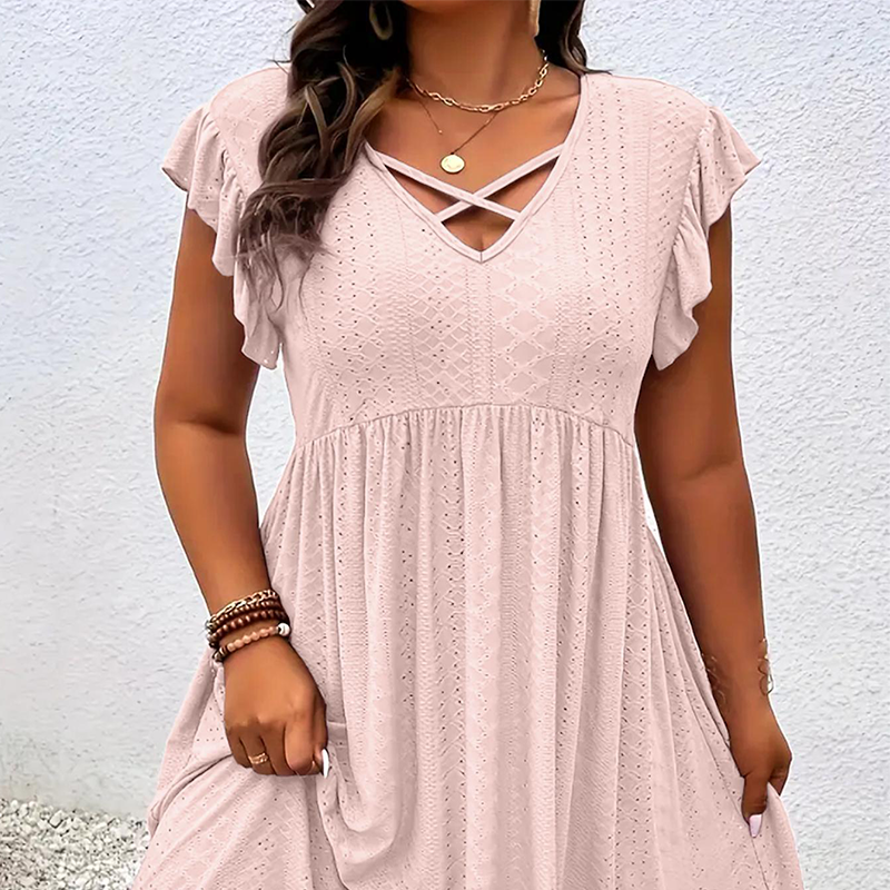 Women's V-Neck Ruffle Trim Dress