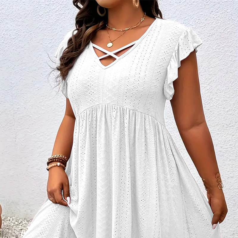 Package Includes: 1* Women's V-Neck Ruffle Trim Dress