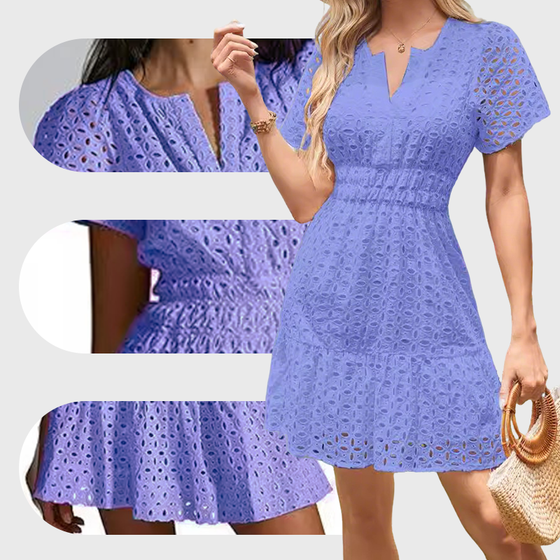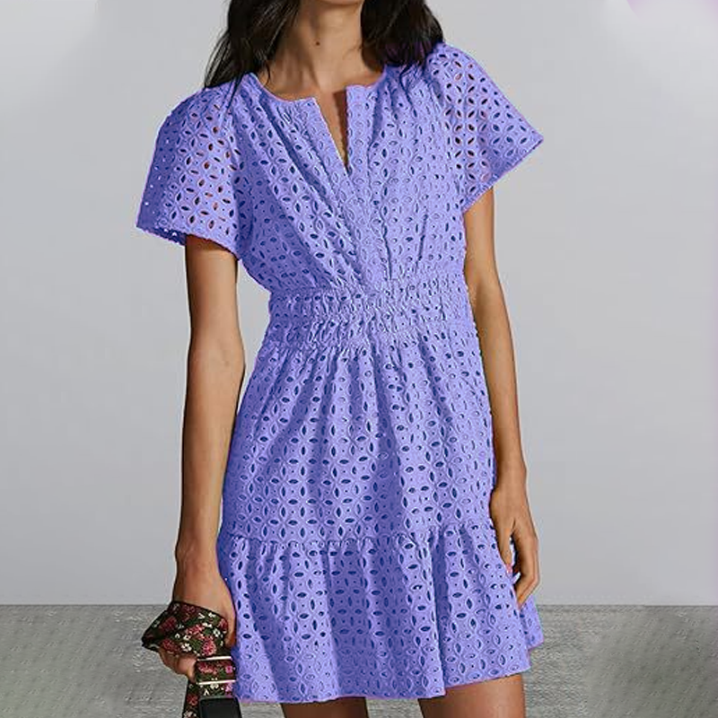 Women's V-Neck Short Sleeve Hollow Out Dress