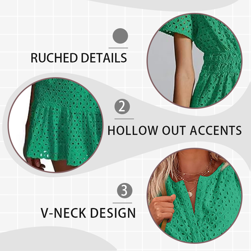 Package Include: 1* Women's V-Neck Short Sleeve Hollow Out Dress